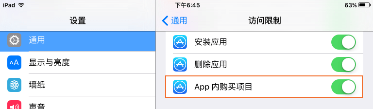 5.APP购买项目的访问限制是打开状态(设置-通用-访问限制)。